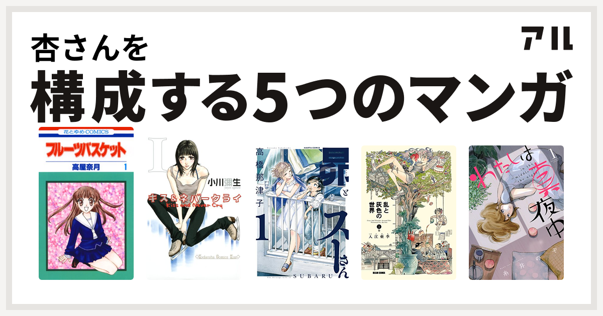 杏さんを構成するマンガはフルーツバスケット キス ネバークライ 昴とスーさん 乱と灰色の世界 わたしは真夜中 私を構成する5つのマンガ アル